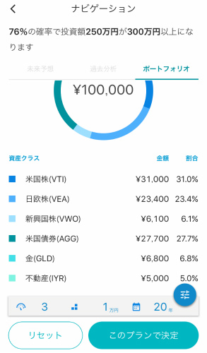 これが76%の確率で20年後に3,000,000円以上になっているみたいです。