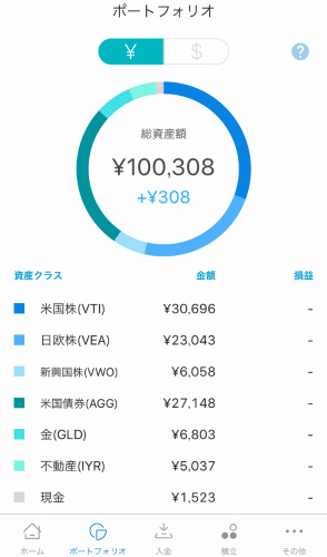 このタイミングで始めると2つのロボアドの投資額が同額になるので、パフォーマンスを比較しながら運用できると思い口座開設に至りました。