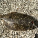 福山市内海町(田島)でキス釣りをしていたら30センチのカレイが釣れたよ。